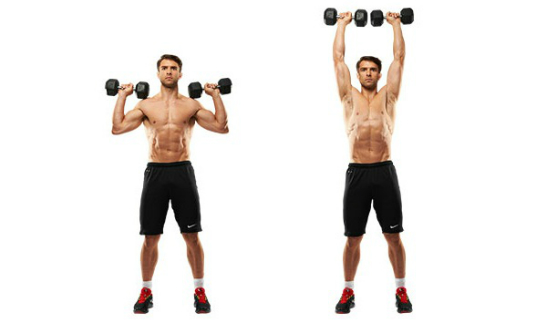Step by step instructions: Hold two dumbbells at bear tallness with a grasp – palms confronting advances. Certification your elbows are before the rod and do not burst out from the sides. Pressure all the weight up finished your head until the point that the moment that your arms are totally expanded. Then slowly come down to starting point.